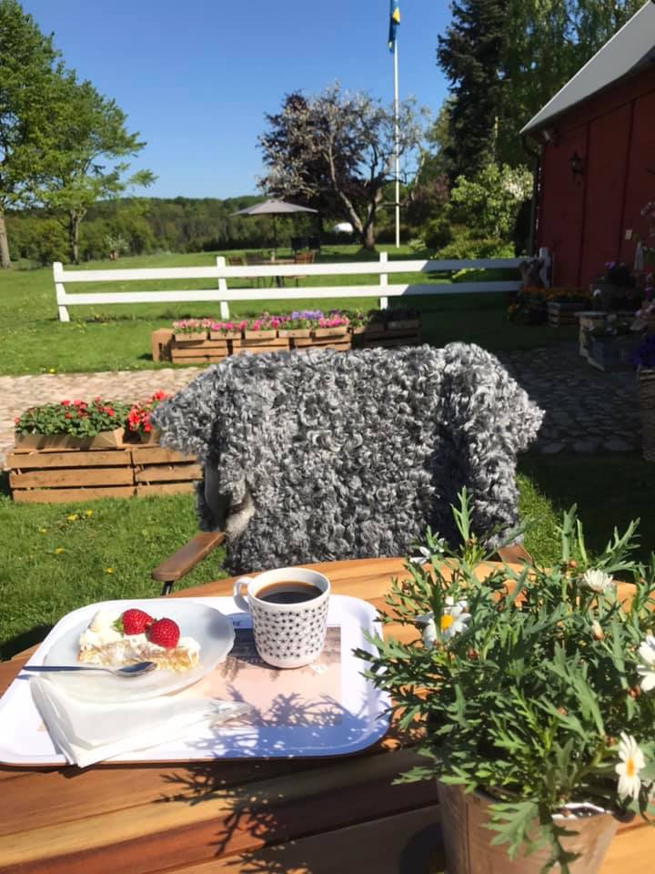 Här serveras hembakade godsaker. Sitt ner i vår trädgård och njut av omgivningen. Vi har även servering inomhus.